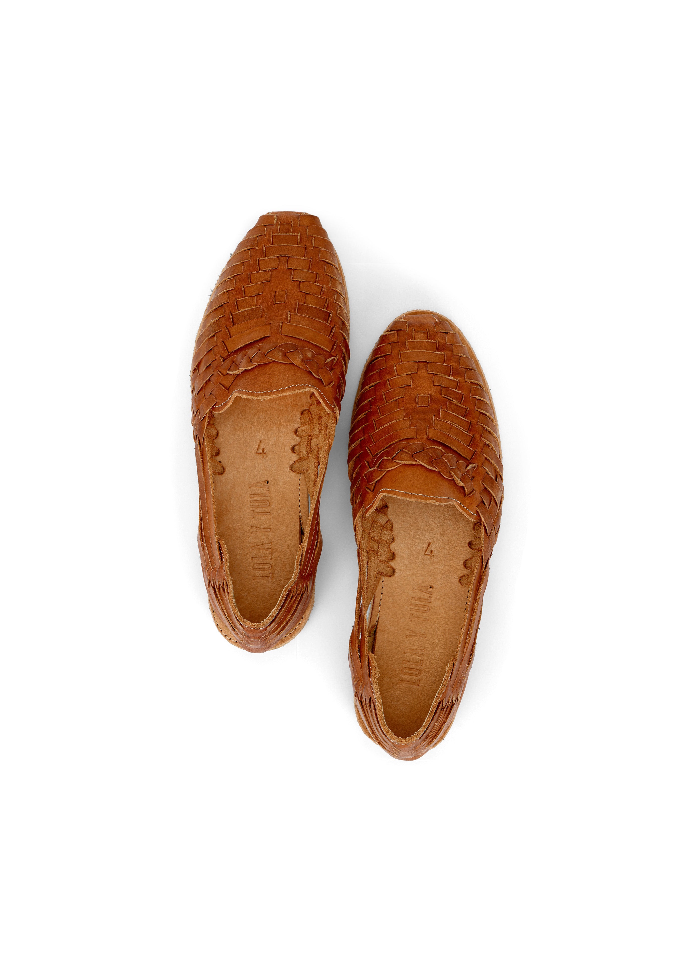 The classic huarache slip on sandal, our closed-toe style is breathable, lightweight, comfortable and beautiful. Our huarache flats are handmade with woven leather by artisans in Mexico.