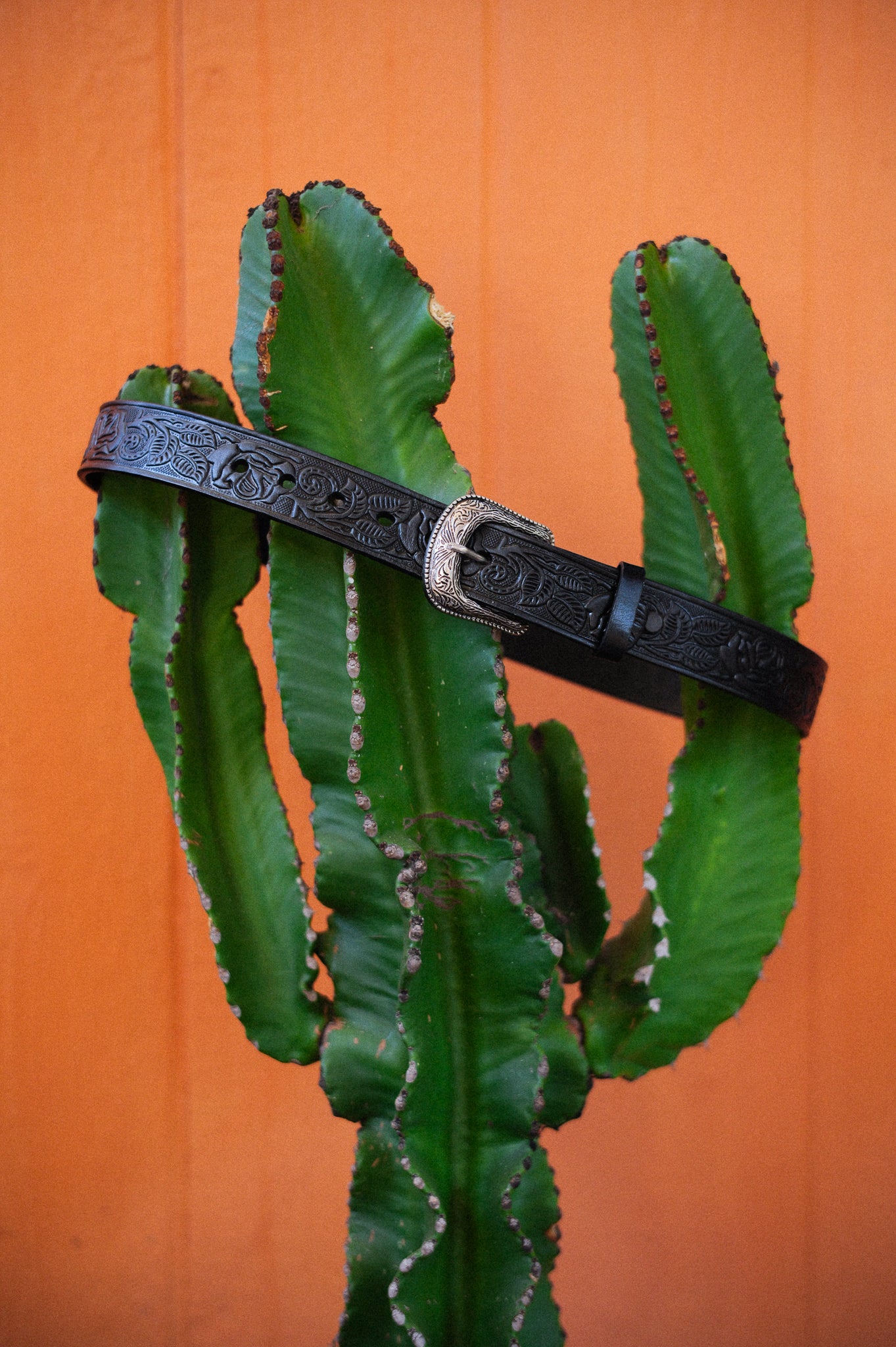 Classic ranchera style leather belt, done in traditional Mexican embossing. Available in three sizes: