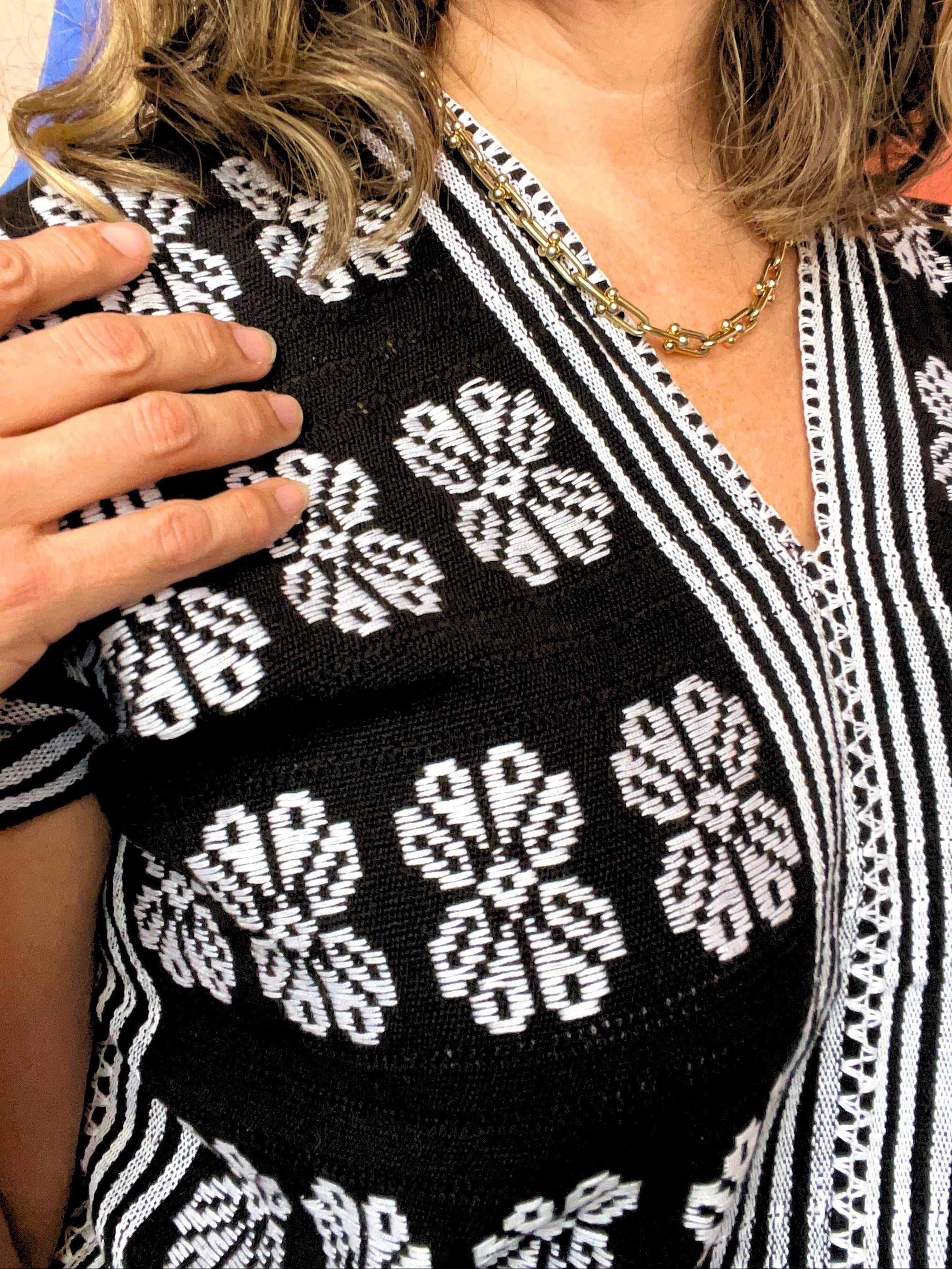 Hand woven v-neck tops, in our signature boxy shape, hand loomed with 100% cotton. Made on ancient back strap looms by a co-op of women in remote mountainous areas outside Oaxaca. We work with a single family of multiple generations to create each piece